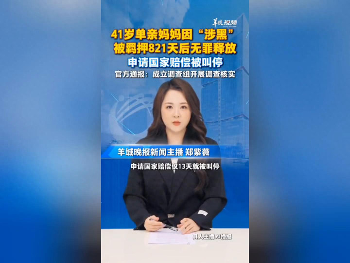 41岁单亲妈妈因"涉黑"被羁押821天后无罪释放,申请国家赔偿被叫停。